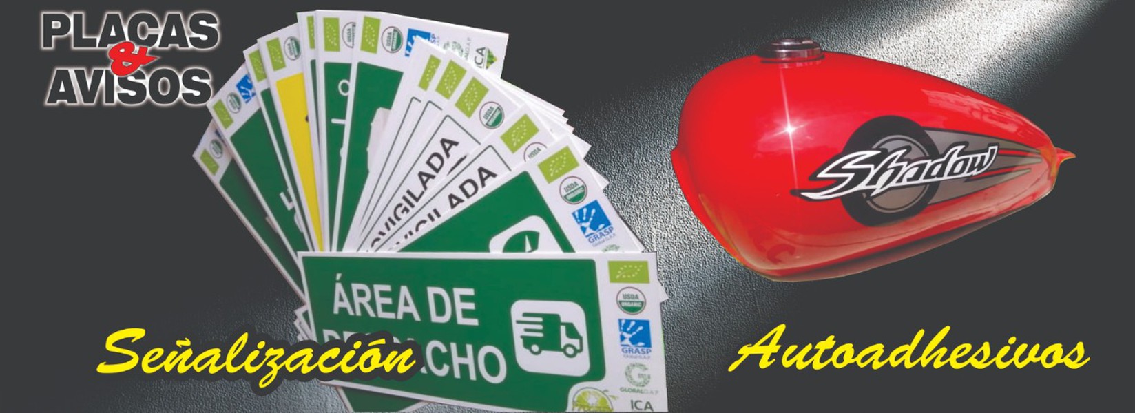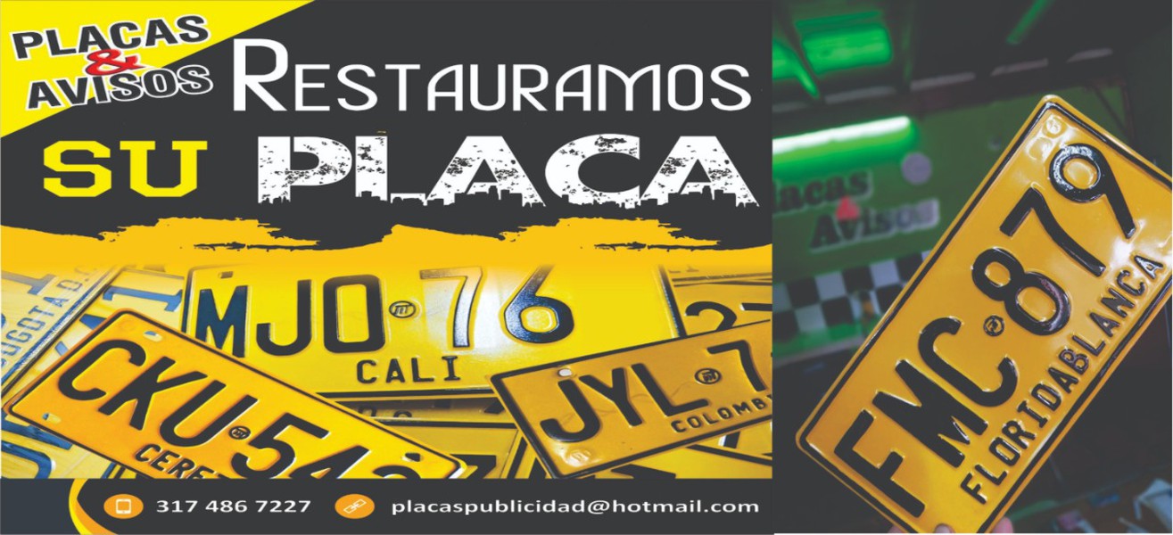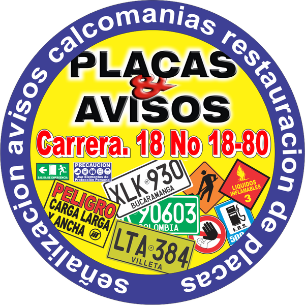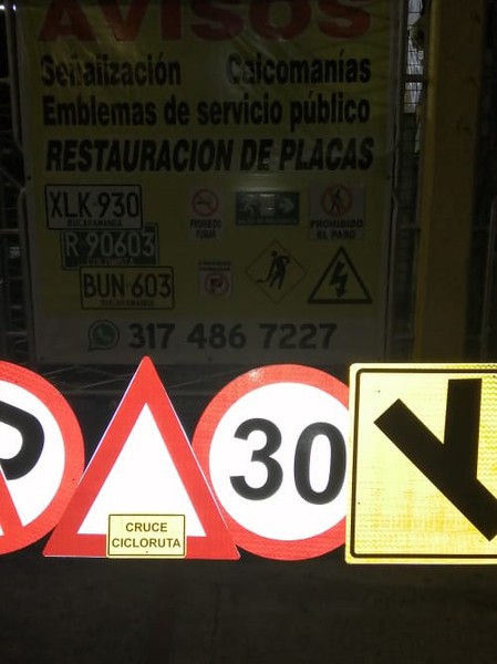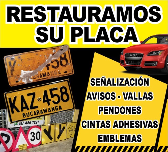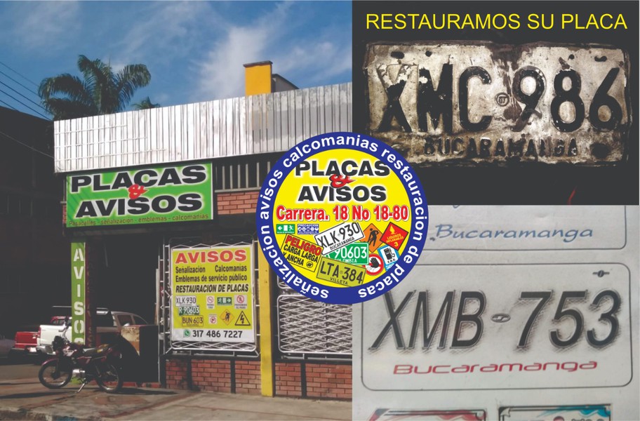 Ofrecemos servicio de restauración de placas, impresión y elaboración de avisos, señalización, pasacalles y pendones, calcomanías en corte e impresión, emblemas de servicio público.